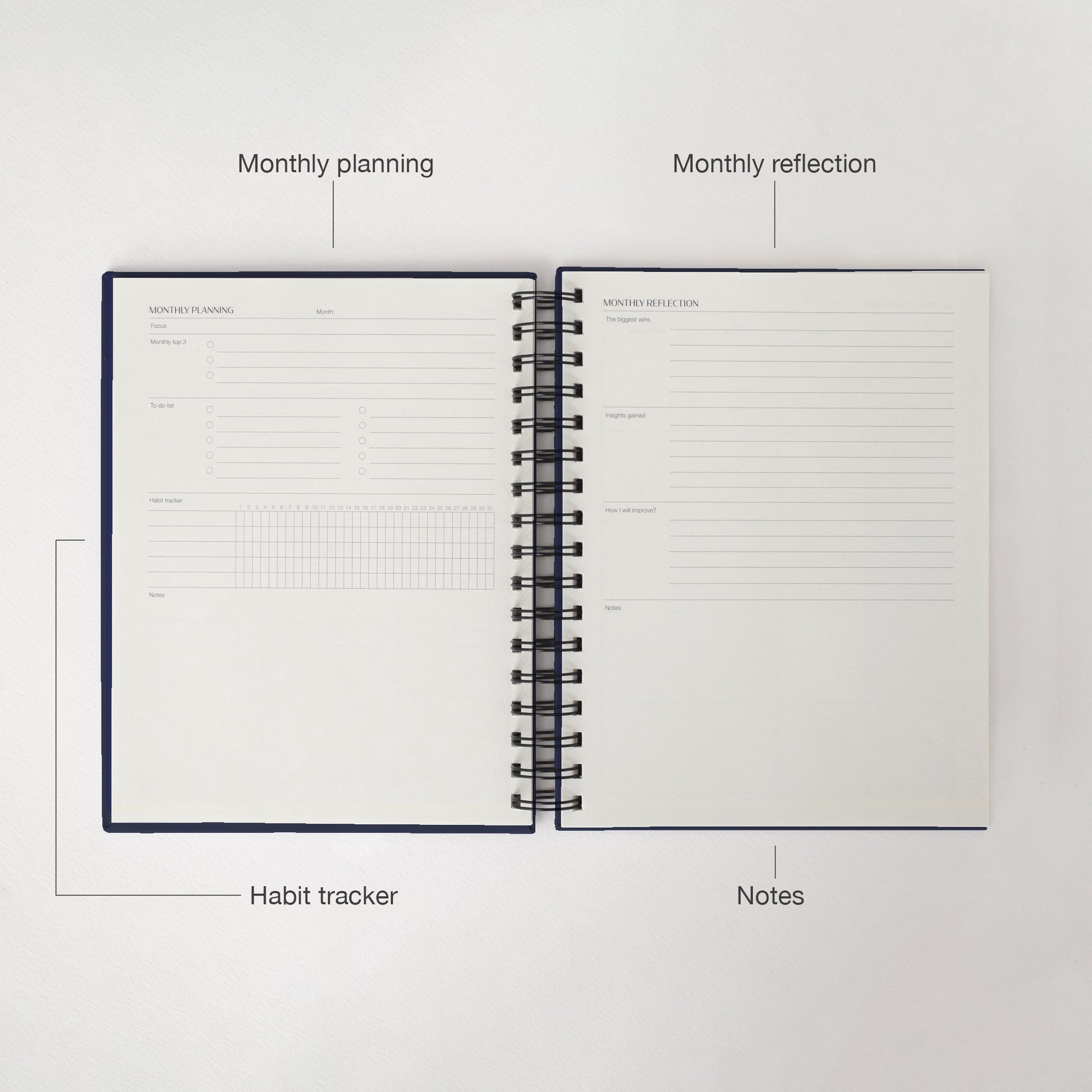We believe that big accomplishments are the result of small daily actions. That’s why we’ve included monthly and weekly habit trackers in our planner to help you build new habits that stick. Our planning system and habit trackers work together seamlessly to help you create lasting change and achieve your goals.